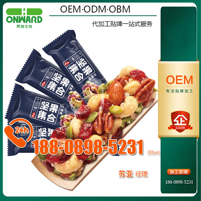 果谷物能量棒代加工ODM贴牌OEM定制企业具有成熟的产品配方,行业专家为您提供坚果谷物能量棒代加工ODM技术保障和生产保障! 坚果谷物能量棒OEM服务,坚果谷物能量棒大小批量可灵活生产,满足您各种定制坚果谷物能量棒需求!详询:188-0898-5231 苏亚 经理 QQ:2930913261