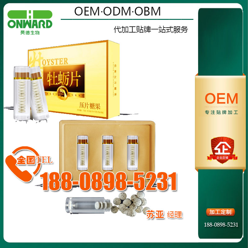 * 品级:食品级 *产品名称:海参牡蛎黄精片 *配料表:产品成份可谈,国产、进口原料均可! *规格:0.5g-1g/片 *包装方式:瓶装,盒装、礼盒装 *起订量/单价:面议、电议(18808985231 苏亚 经理) *出品商:昊德(上海)生物科技有限公司 *海参牡蛎黄精片贴牌代加工OEM、ODM厂家代加工基本要求: *品牌商必须具备合法注册公司、商标、食流证及渠道操作,不承接个人业务! |